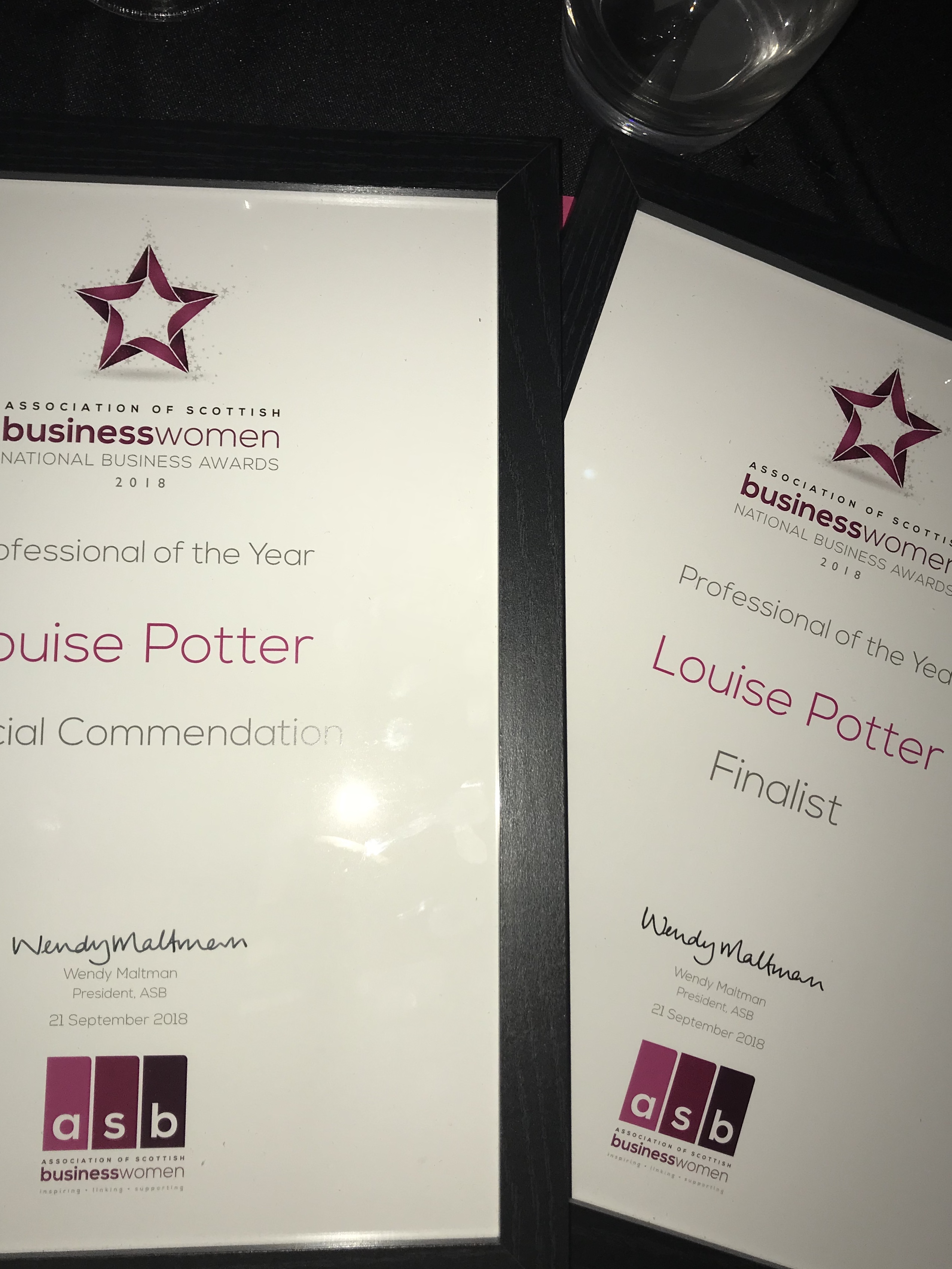 Utterly thrilled to be named as a finalist for the Professional of the Year Award at the Association of Scottish Businesswomen National Business Awards 2018!